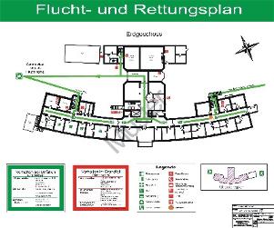 -Erstellung der Flucht- und Rettungspläne f. die kpl. Klinik mit Lieferung und Montage der Rahmen sowie die Erstellung der Feuerwehr- und Brandmeldelinenpläne (Laufkarten)